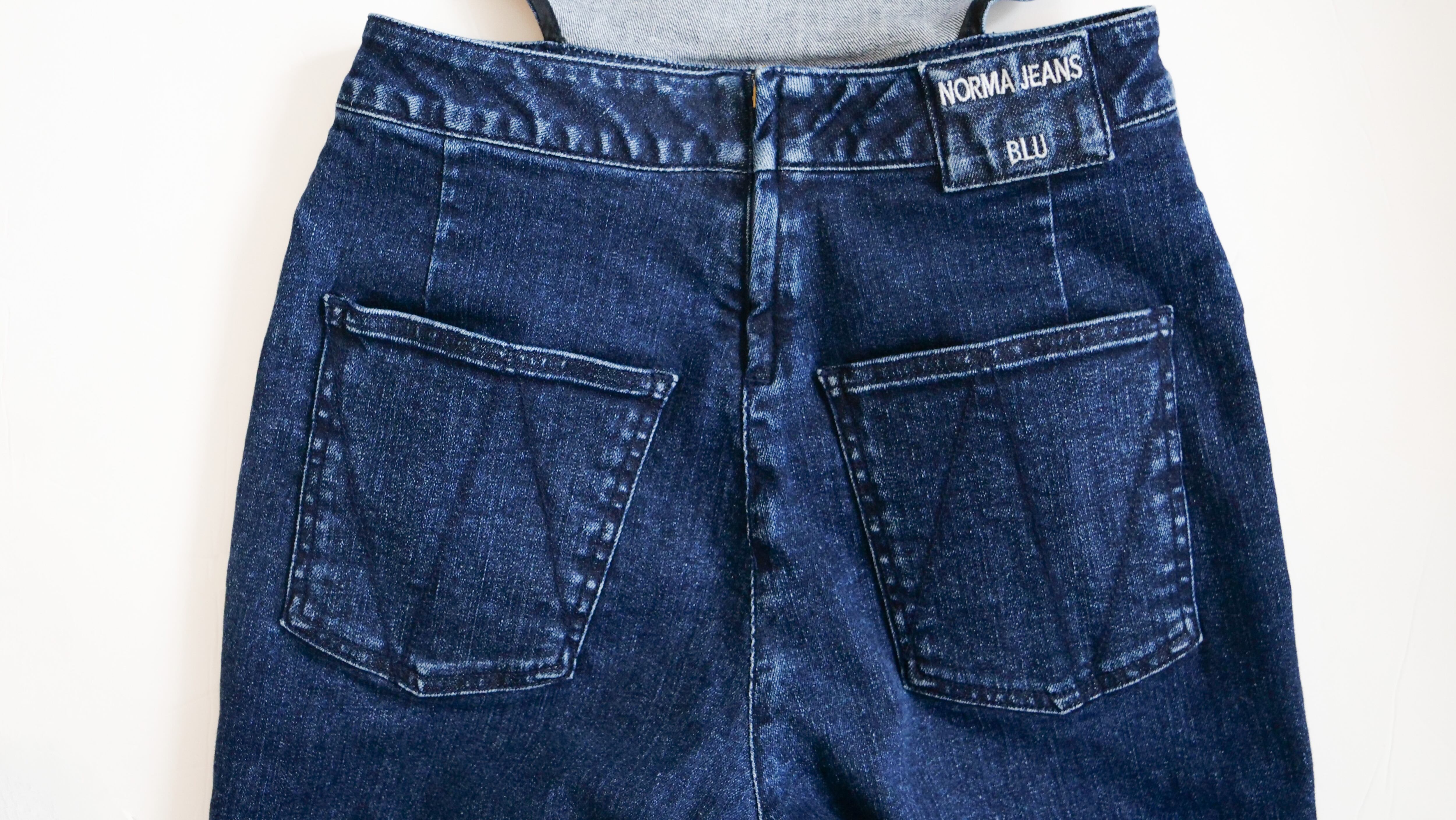 バックポケットにはNORMAの頭文字「N」をオリジナル刺繍しました。