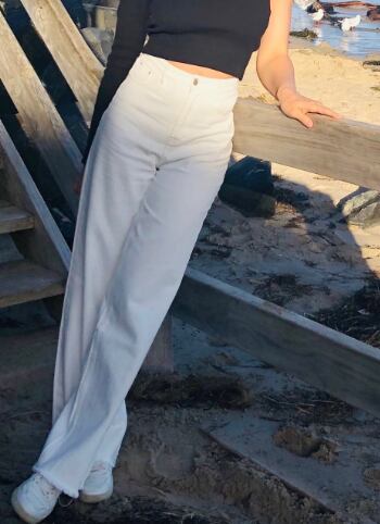 裾の部分は切りっぱなしになっていて足元がダボつく感じが可愛いですし、