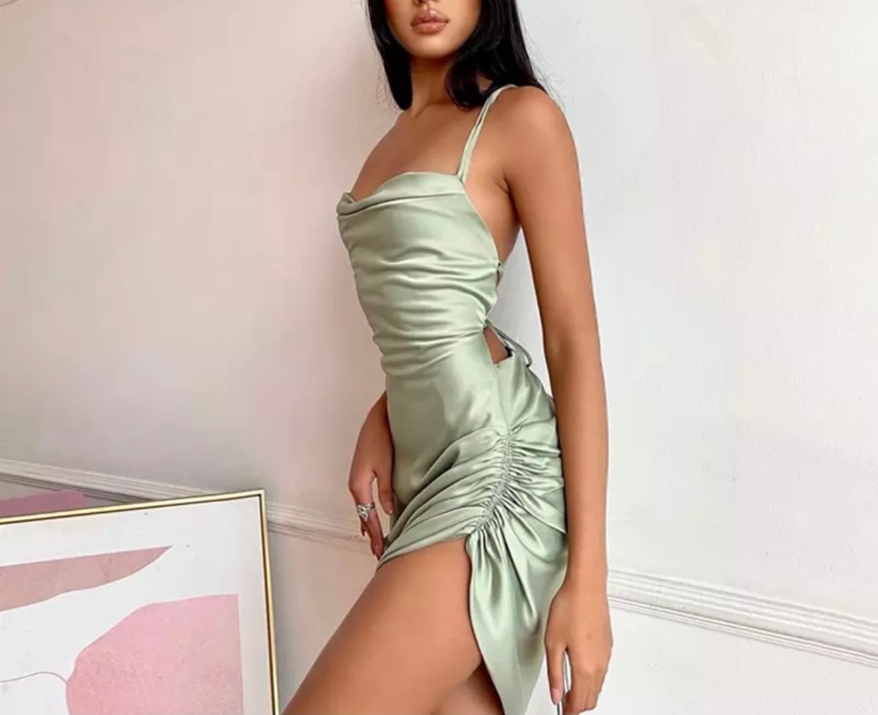 サイドがギャザー仕様になっていて、長さが調節できるようになっています。