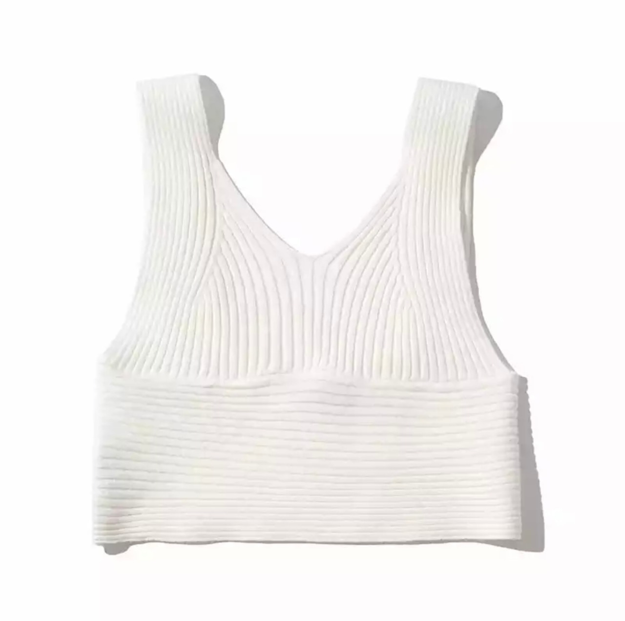 テレコ編みされたサマーニット素材のショートトップスになります。