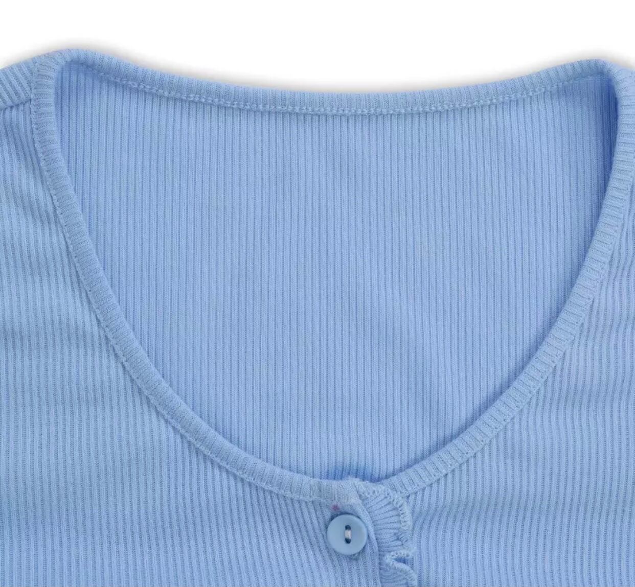 裾、袖口、ボタン周りがさりげないプチフリルなので、甘くなり過ぎず