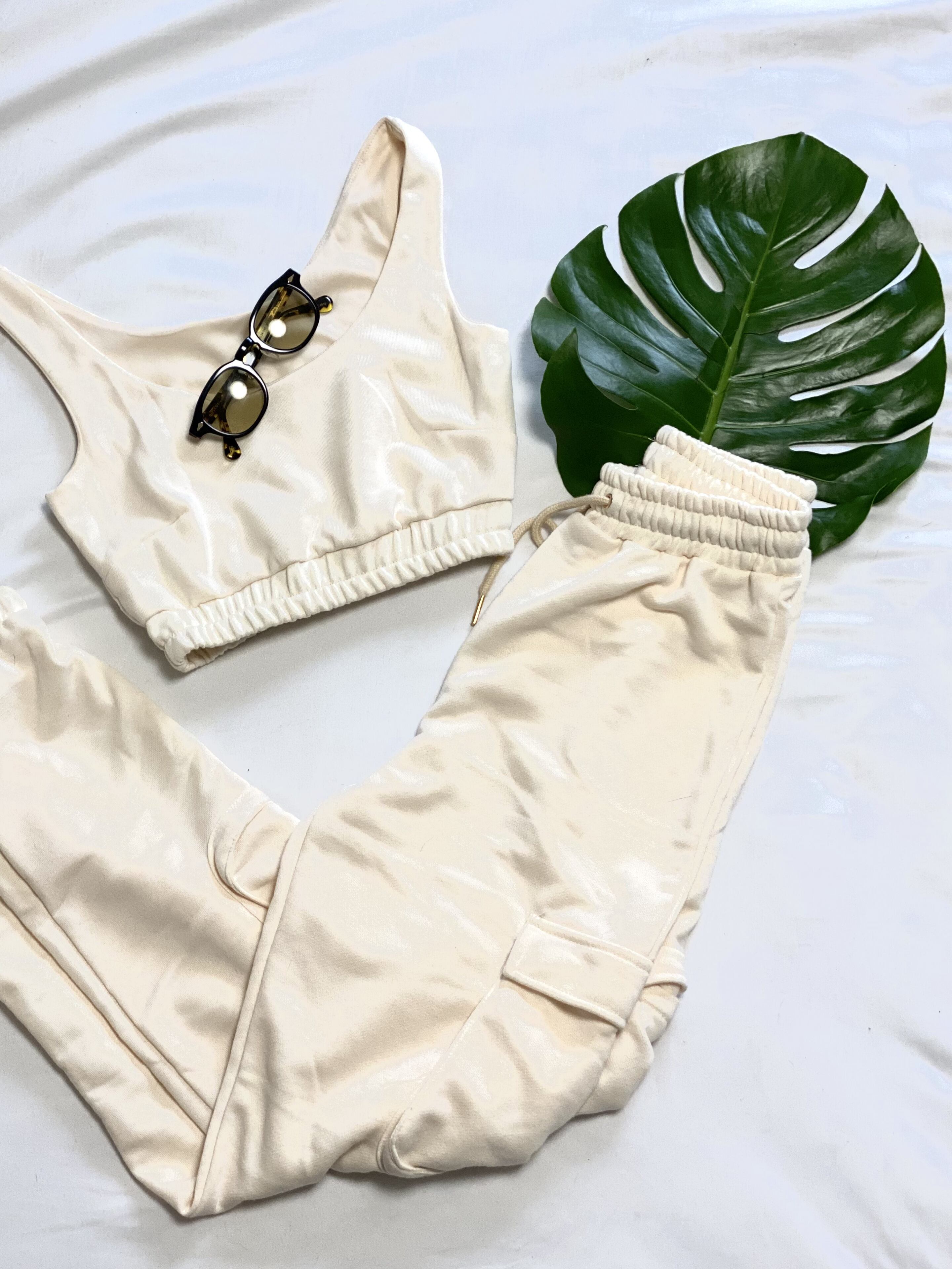 スウェット素材のセットアップでトップスの方はスポーツブラタイプになっています。